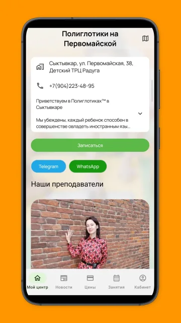 Приложение «Мои Полиглотики» предназначено для клиентов сети Детских Образовательных Центров Полиглотики™. Оно позволяет удобно управлять образовательным процессом вашего ребенка и получать актуальную информацию о центрах и преподавателях. С помощью приложения вы можете: