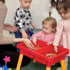 Основная задача курса - пробудить у ребенка интерес к обучению и изучению иностранного языка. Родители и дети вместе посещают наши увлекательные занятия. Развивающие и подвижные игры - основной вид активности в группах детишек от одного года до двух лет. Мы вместе поем песни, разучиваем стишки и потешки, играем в пальчиковые игры, смотрим обучающие мультики. Родители, не владеющие иностранным языком, могут учиться вместе с ребенком и всегда поддержать его в обучении.