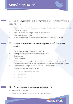 LMS-система – для онлайн-обучения клиентов, дополнительных занятий и отслеживания прогресса учеников.