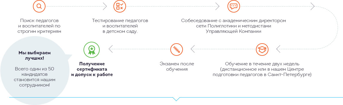 Предоставляется неограниченный доступ руководителю и сотрудникам к базе знаний и архиву вебинаров, включающему более 100 уроков, чек-листыВ полилингвальных детских садах Полиглотики первую половину дня воспитанники занимаются с педагогами и носителями языка, которые говорят только на английском языке. Развивающие занятия, игровая деятельность, прогулки, завтрак и обед, музыкальное обучение, физкульт-минутки сопровождаются только английской речью, что обеспечивает полное погружение в языковую среду и углубленные знания английского языка. Во второй половине дня, после обеда и дневного сна, дети занимаются на русском языке в соответствии с государственной образовательной программой с гимназическим уклоном, что гарантирует развитие навыков письма, чтения, счета, творческих и физических способностей – обеспечивают успешную подготовку ребенка к поступлению в школу. Такой подход способствует глубокому усвоению программ. Дети начинают говорить на иностранном языке на знакомые темы уже через 3-6 месяцев занятий.