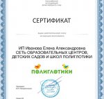 Я всегда хотела, чтобы любое занятие ребёнка приносило ему радость и удовольствие, и дети бежали на такие уроки сами, по собственному желанию, а не потому, что мама так захотела! Для меня важно видеть результаты обучения и наши Полиглотики этому доказательство. Дети просто обожают к нам приходить на занятия и не хотят уходить домой! Наши ученики очень быстро осваивают программу и радуют родителей своими успехами. В феврале 2020 года наш центр Полиглотики получил образовательную лицензию.