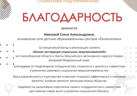 Победитель первой в России программы для социальных предпринимателей «Навстречу импакт-инвестициям» 2020.