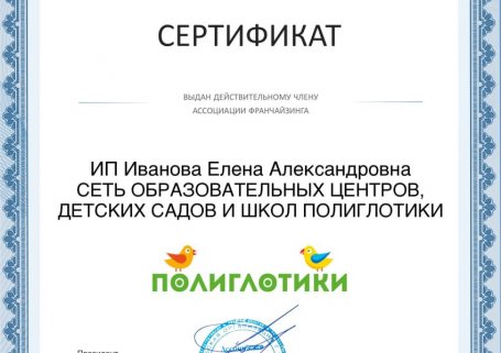 Все наши образовательные программы подкреплены официальными сертификатами соответствияВся полиграфическая продукция, постеры, плакаты, брошюры, пособия, рабочие тетради нарисованы специально для сети Полиглотики профессиональным художником-иллюстратором. Дизайн-макеты ассоциируются исключительно с брендом