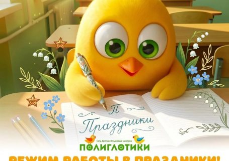 📢 Внимание, друзья! 📢Информируем вас о графике работы центра «Полиглотики» в мае:✅ 1 и 2 мая — работаем в обычном режиме, все занятия проходят по расписанию! ❌ 8, 9, 10 и 11 мая — центр закрыт, не работаем. ✅ С 12 мая — возвращаемся к обычному режиму работы!Будем рады видеть всех на занятиях! 😊До встреч в Полиглотиках! 🌟... Подробнее →