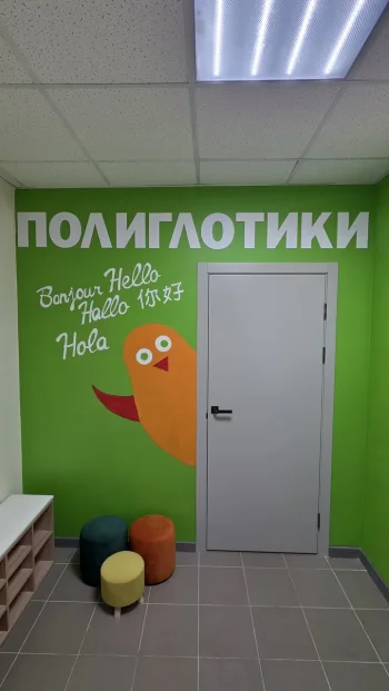 — В основу оформления легла концепция «Образовательного путешествия», где дизайн стен опирается на возрастную психологию. Мы прошли путь от сказочных сюжетов и мягких гор для малышей до строгой интеллектуальной геометрии для школьников. Каждый элемент здесь функционален: от визуального погружения в языковую среду через росписи до нашего главного девиза на стенах — «Маленькими шагами к большому успеху».