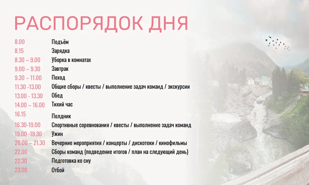 День в экспедиции — баланс активности, учёбы и отдыха. Расписание может гибко меняться в зависимости от погоды и этапа квеста, но сохраняет сбалансированную структуру для восстановления сил.