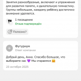 Дина Сгибнева«Полиглотики» на БеломорскойЗанимается в группе английским языком с сентября 2025 г. Очень довольны качеством обучения, ребенок ходит с удовольствием, в школе оценки одни пятерки по данному предмету.