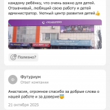 Сабрина«Полиглотики» на ПервомайскойСпасибо Вам ,за вклад в развитие наших деток,за чуткость и понимание!... Подробнее →