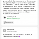Татьяна«Полиглотики» на ШиловаХодим на мнемотехнику, интересное направление, точно будет полезно в школе на всех предметах. Дети занимаются в малых группах, так каждому уделяется достаточно внимания учителя. Также нам нравится приветливые администраторы,обстановка в центре.... Подробнее →