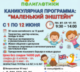 Представляем летнюю каникулярную программу «Маленький Эйнштейн» — уникальное сочетание естественных наук и английского языка для любознательных Полиглотиков!Представьте: ваш ребёнок проводит... Подробнее →