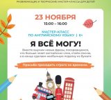 23 ноября в 15:00 в ТРК "Парк Молл" по адресу пр-кт Просвещения, 43 пройдет мастер-класс по английскому языку "Я все могу!". Вместе выучим новые фразы, посоревнуемся, кто больше знает англий... Подробнее →
