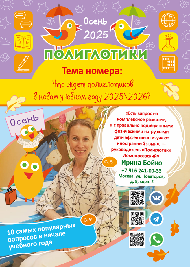Также рассказываем о том, что ждет полиглотиков в новом учебном году, как мы грамотно сочетаем умственные и физические нагрузки, а еще много интерактива.