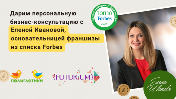 Дарим бесплатную часовую сессию с Еленой Ивановой и бонус! Она — легендарная основательница “Полиглотики” и “Футуриум” — компаний из рейтинга Forbes.