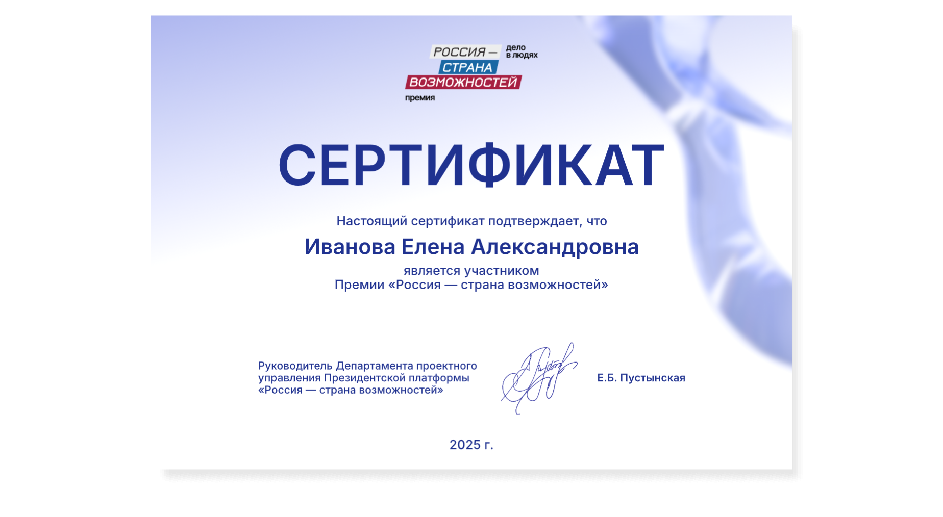 Основатель сети «Полиглотики» и «Футуриум» Елена Иванова стала участником премии «Россия – страна возможностей». Это говорит о том, что ее инициативы были признаны значимыми для развития страны.