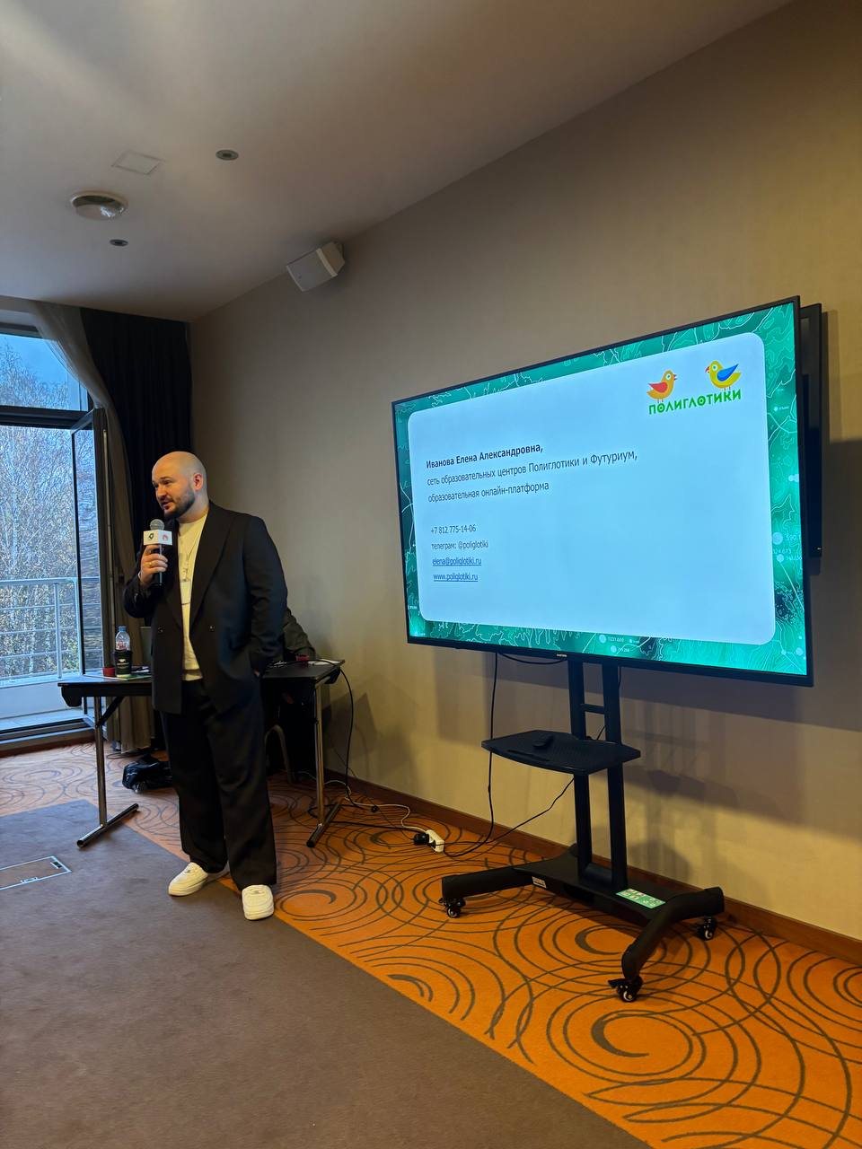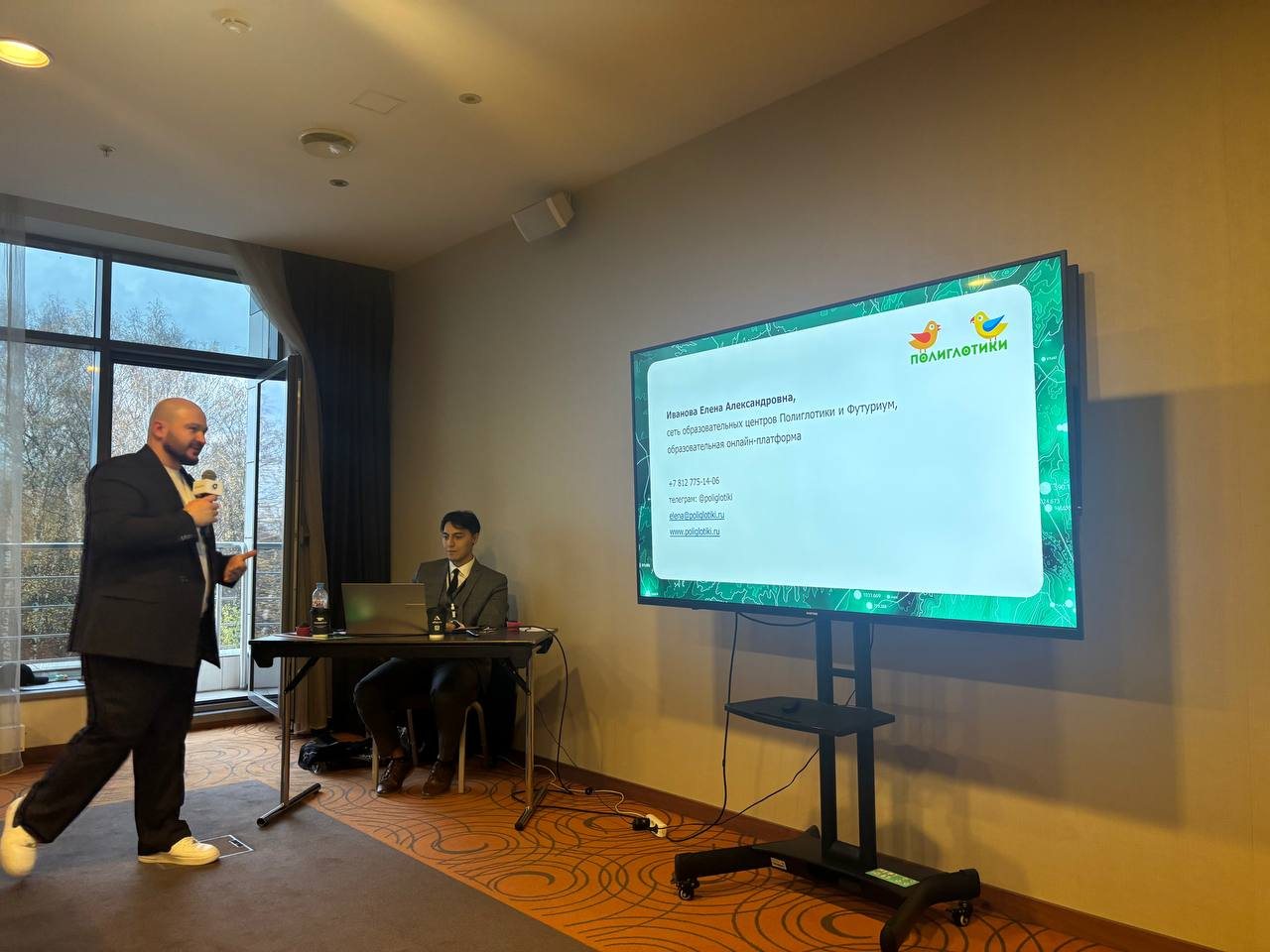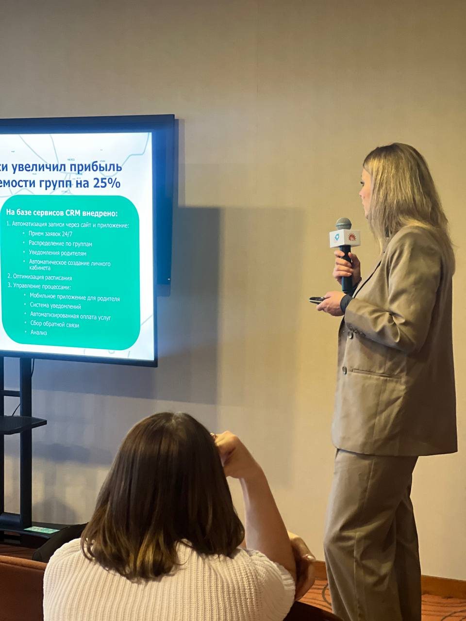 Особое внимание спикер уделила практическим примерам внедрения автоматизации в сети «Полиглотики» и «Футуриум», где успешно работают мобильные приложения, системы онлайн-платежей, VR/AI-технологии и другие цифровые инструменты.